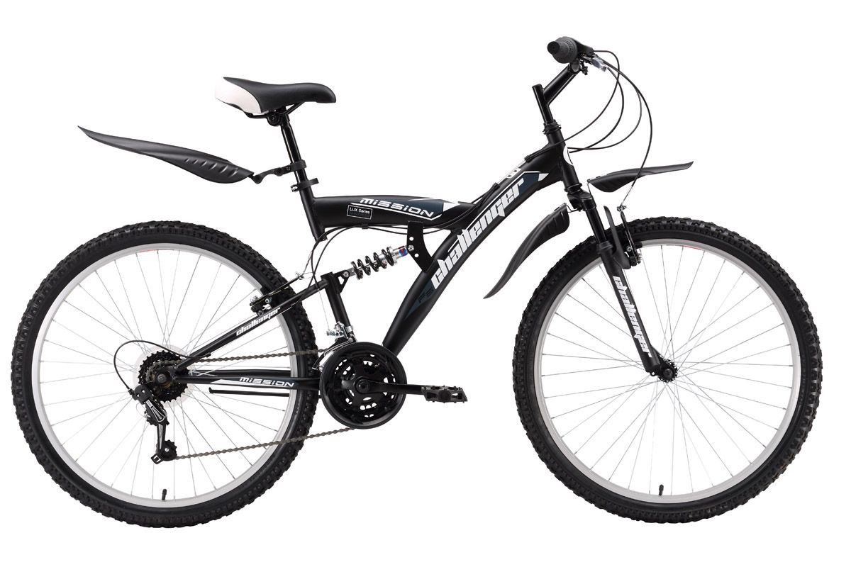Популярный недорогой двухподвес Challenger Mission Lux на стальной раме хорошо послужит вам для выездов на природу. Передняя и задняя подвеска отрабатывают неровности дороги и делают велопрогулки комфортными. Велосипед Challenger Mission Lux оборудован надёжными ободными тормозами. Двухподвес имеет 18 передач, выбор которых легко выполняется переключателями Revo Shift и задним переключателем Shimano. Быстросъёмные пластиковые крылья надёжно защищают во время езды от случайных брызг.