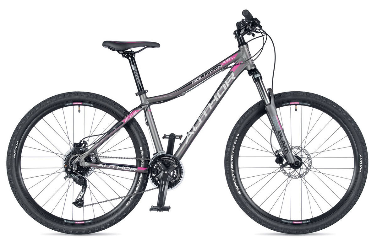 • Author Solution ASL - женский горный велосипед на 27.5-дюймовых колесах. Алюминиевая рама, амортизационная вилка RST, гидравлические дисковые тормоза Tektro, переключатели Shimano Altus, 27 передач.
