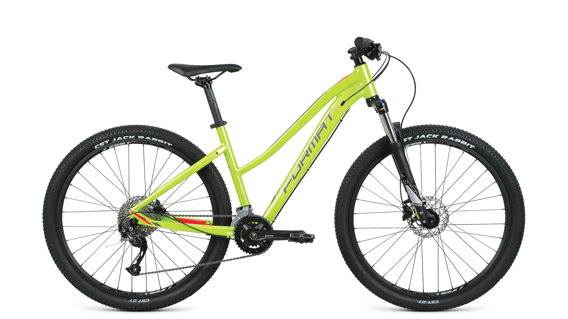 Бренд FORMAT Модель 7712 27,5 Год 2021 Материал рамы Алюминий (Alloy) Тип вилки Амортизационная (пружина) Ход вилки, мм 100 Вилка/регулировки SR Suntour XCM HLO 27.5" 100мм, пружинная, 9x100мм. Регулировка предварительной нагрузки, блокировка Обода Format Double Wall, 32Н, Schrader | Алюминиевый двустеночный Резина CST Jack Rabbit, 27.5x2.25" | Cталь Тормоза Дисковые гидравлические Грипсы Format Lock-On Тормоз Tektro M275, 160/160мм Уровень оборудования Любительский Шифтеры Shimano Altus M2010 Переключатель передний Shimano Altus M2020 Переключатель задний Shimano Altus M2000, Shadow Кассета Sun Race CSM98, 11-36T, 9-Speed | 9: 11-36T Цепь KMC Z9 Каретка Kenli KL-08A, картриджная Шатуны Shimano MT101, 36x22T, 170мм | 2: 36x22T Количество скоростей 18 Руль Format Trekking, ширина: 680мм, подъём: 20мм, диаметр: 31.8мм Рулевая колонка Kenli, полуинтегрированная, ZS 44/28.6|ZS 44/30.0 Вынос Format Trekking, угол: 6°, диаметр: 31.8мм, длина: 60мм Седло Format Woman/Trekking Подседельный штырь Format, диаметр: 30.4мм, длина: 350мм Педали Пластиковые Втулка передняя Format, пром. подшипники, 9x100мм, эксцентрик Втулка задняя Format, пром. подшипники, 10x135мм, эксцентрик -